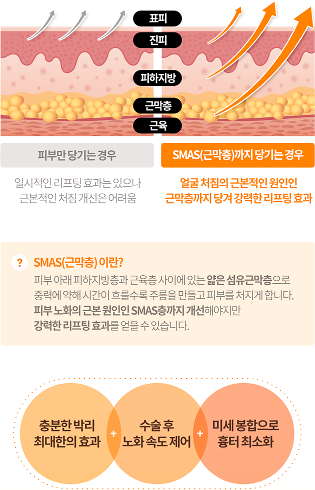 피부층만 당기는게 아니라 SMAS층 부터 확실하게 당겨