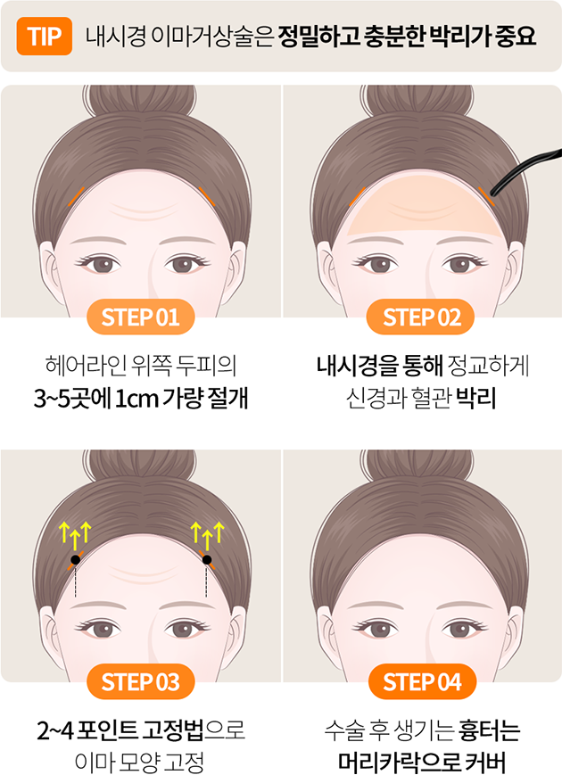 주름이 생긴 이마와 늘어지고 처진 눈썹 개선이 가능한 안티에이징