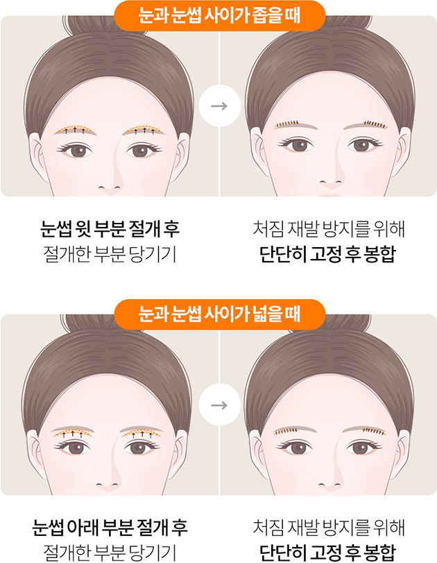 다른 부위에 비해 지방이 적어 빠르게 노화가 진행되는 처진 눈꺼풀을 당겨