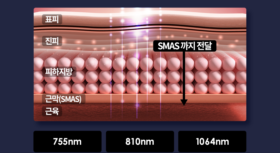 깊은 SMAS층까지 닿는 빛 에너지로 진피층의 콜라겐을