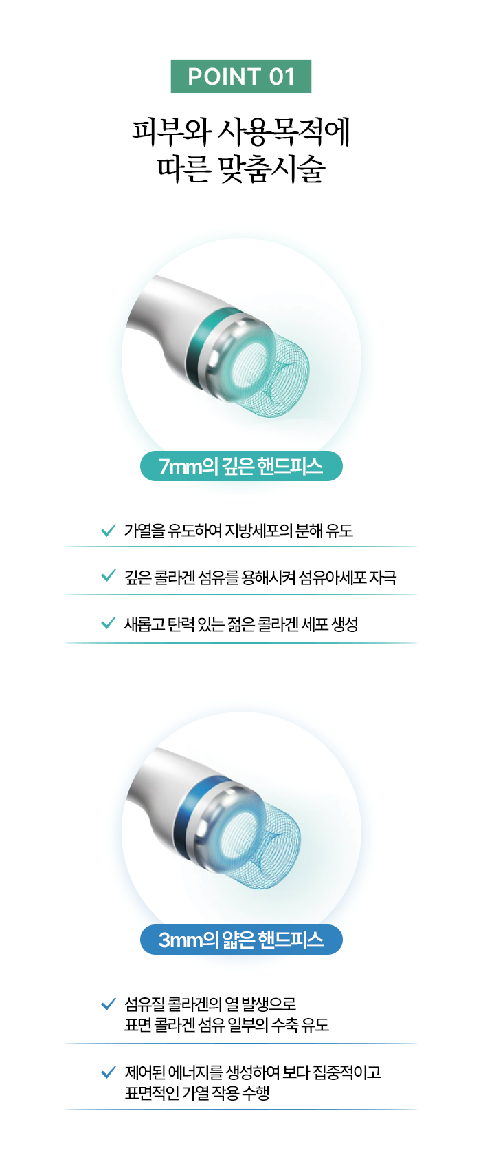 투과되어 통증 및 피부 손상 위험이 적으며 에너지가 온전히 진피층에 효과적으로