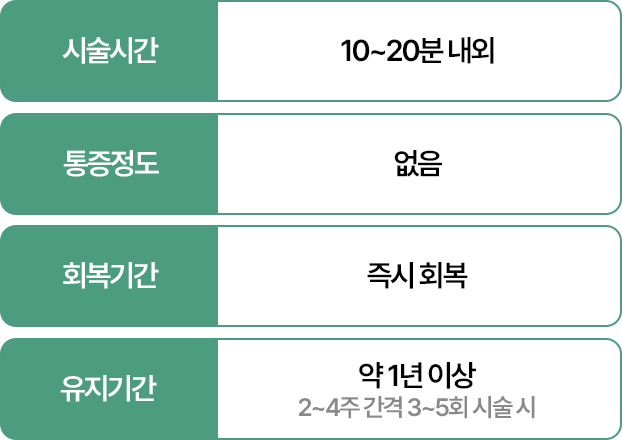 전달되어 리프팅 효과와 타이트닝 효과가 뛰어난 레이져 시술입니다.